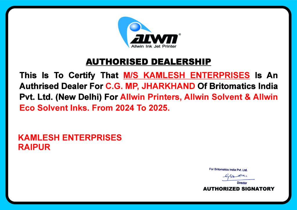 • Mr. Ranjeet Sharma, the founder of Kamlesh Enterprises, has extensive experience in the printing and machinery industry. Under his leadership, the company has become an authorized dealer of Allwin Inkjet Printers and a reliable partner for businesses looking for advanced printing solutions.